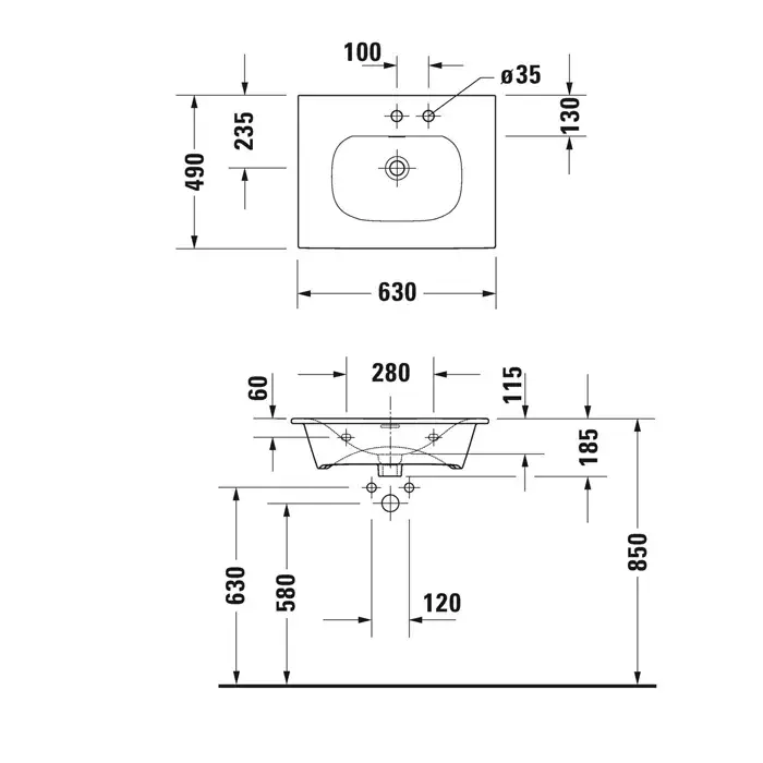 Duravit Viu Раковина, 3 отв под смес, 63х49 см, покр WonderGliss, цвет: белый 23446300581