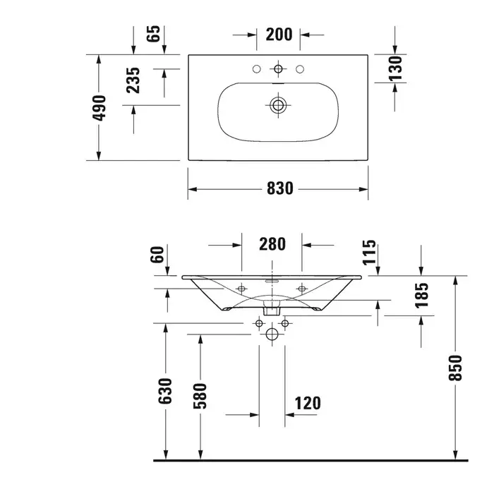 Duravit Viu Раковина, 3 отв под смес, 83х49 см, покр WonderGliss, цвет: белый 23448300581