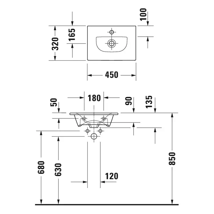 Duravit Viu Раковина, без отв. под смес, 45х32 см, цвет: белый 733450070