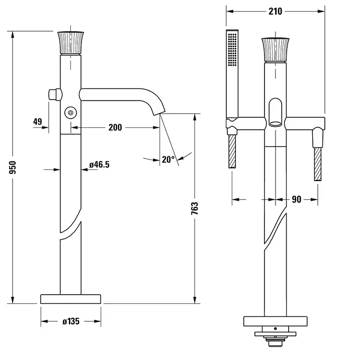 Duravit White Tulip Напольный смеситель для ванны с ручным душем, h-95 cм, цвет: хром WT5250000010