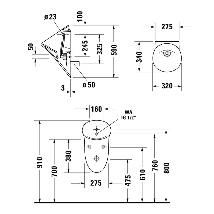 Duravit White Tulip Моноблок 37x65 см, безободковый, слив универсальный, HygieneGlaze, цвет: белый