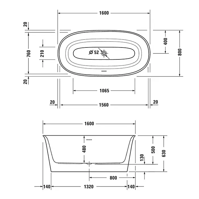 Duravit White Tulip Ванна отдельностоящая, 160х80хh63см , со спец сливом и переливом, цвет: белый