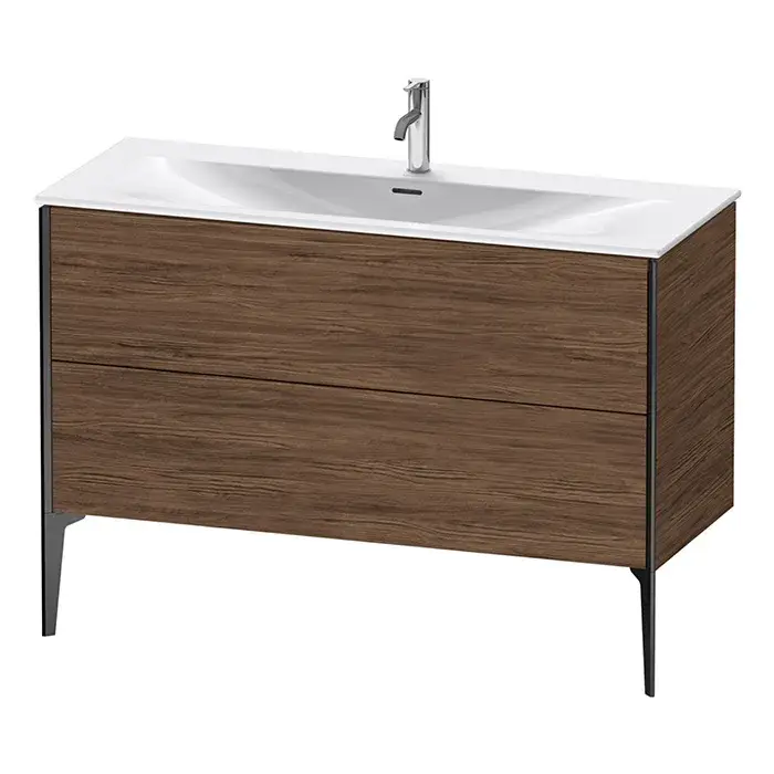 Duravit XViu Консоль напольная, 80x48x85см, с полкой, с раковиной без перелива, 1 отв., цвет: black matt/black high gloss lacquer