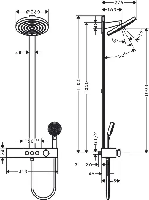Душевая стойка HANSGROHE PULSIFY Showerpipe 24240670 матовый черный