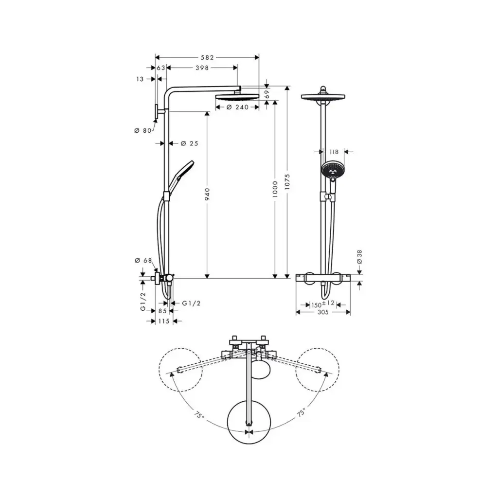 Душевая стойка HANSGROHE Raindance select 27129000 хром