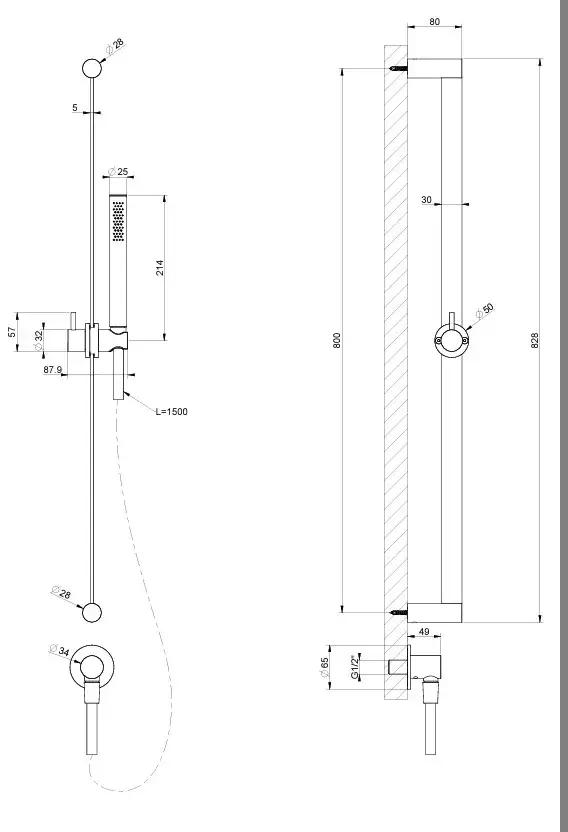 Gessi 316 Душевой комплект, + вывод, держатель, шланг 1,50 м и душевая лейка, цвет: brushed black metal pvd