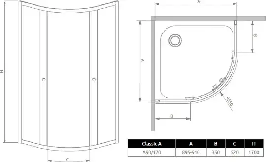 Душевой уголок Radaway Classic A 90x170 прозрачное стекло 30001-01-01