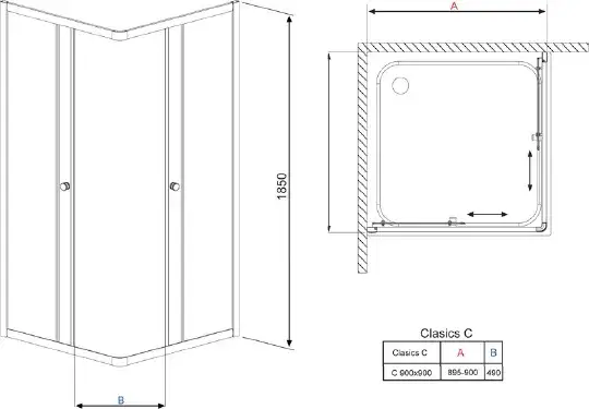 Душевой уголок Radaway Classic C 90 прозрачное стекло 30050-01-01