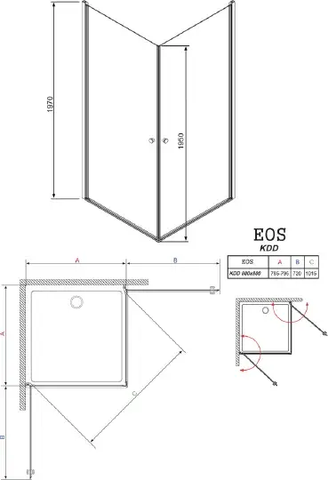 Душевой уголок Radaway Eos KDD-B 80x90 прозрачное стекло 37343-01-01N