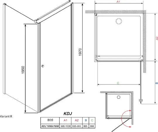 Душевой уголок Radaway Eos KDJ 100 прозрачное стекло R 37523-01-01NR