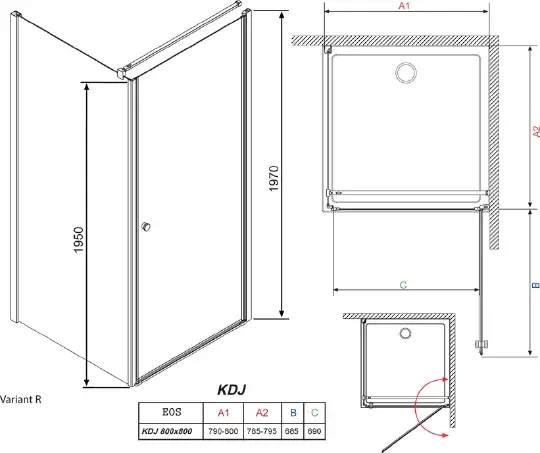 Душевой уголок Radaway Eos KDJ 80 прозрачное стекло R 37513-01-01NR