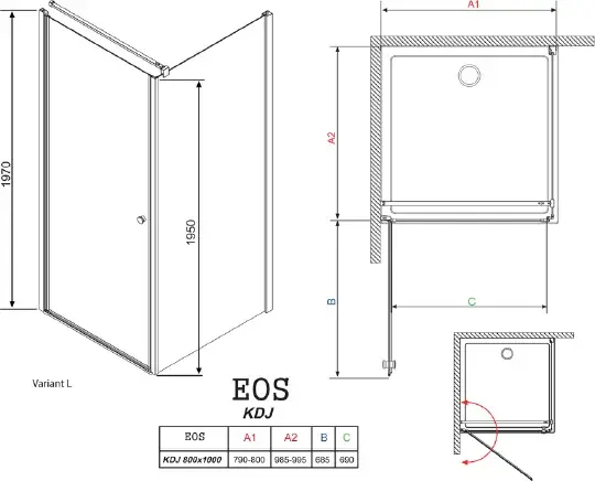 Душевой уголок Radaway Eos KDJ 90 прозрачное стекло L 37503-01-01NL