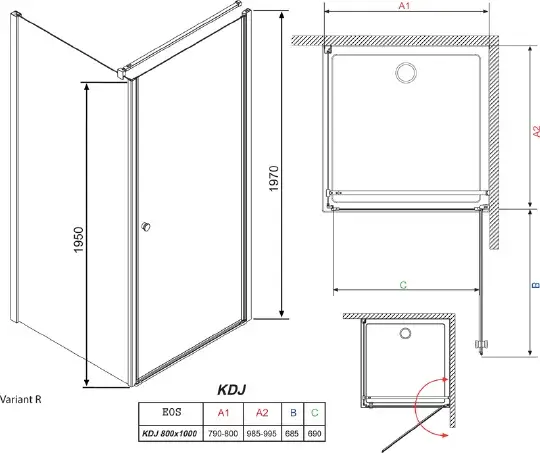 Душевой уголок Radaway Eos KDJ 80x100 прозрачное стекло R 37543-01-01NR