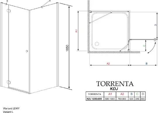 Душевой уголок Radaway Torrenta KDJ 100x80 прозрачное стекло L 32242-01-01NL