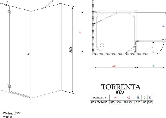 Душевой уголок Radaway Torrenta KDJ 100x90 прозрачное стекло L 32246-01-01NL