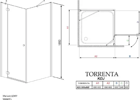 Душевой уголок Radaway Torrenta KDJ 90 прозрачное стекло L 32202-01-01NL