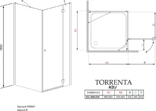 Душевой уголок Radaway Torrenta KDJ 90 прозрачное стекло R 32202-01-01NR