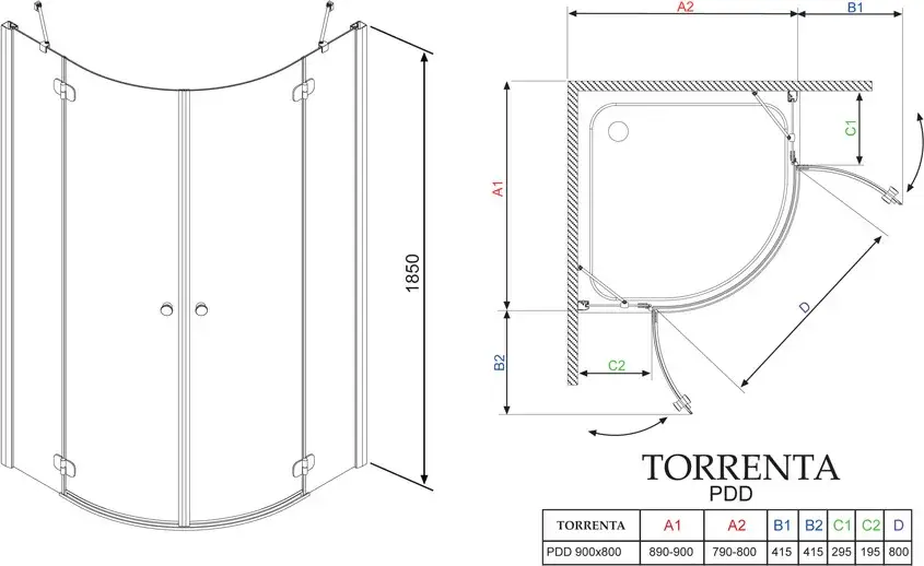 Душевой уголок Radaway Torrenta PDD/E 90x80 прозрачное стекло 31630-01-01N