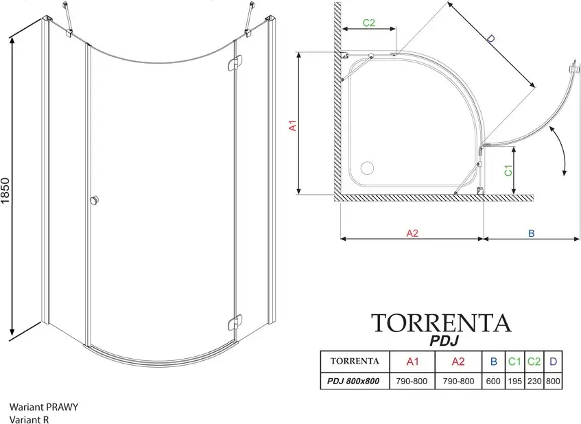 Душевой уголок Radaway Torrenta PDJ 80 прозрачное стекло R 31810-01-01N