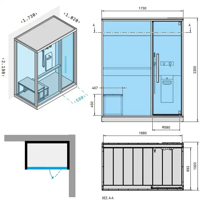 Effegibi H Large Хаммам с душем 173x102x220см, угловая SX, цвет: Soft Sand