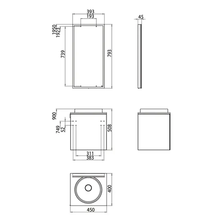 Emco Asis Комплект мебели, без отверстий для смесителя, Ручка справа, 45 см, цвет белый 9582 000 04