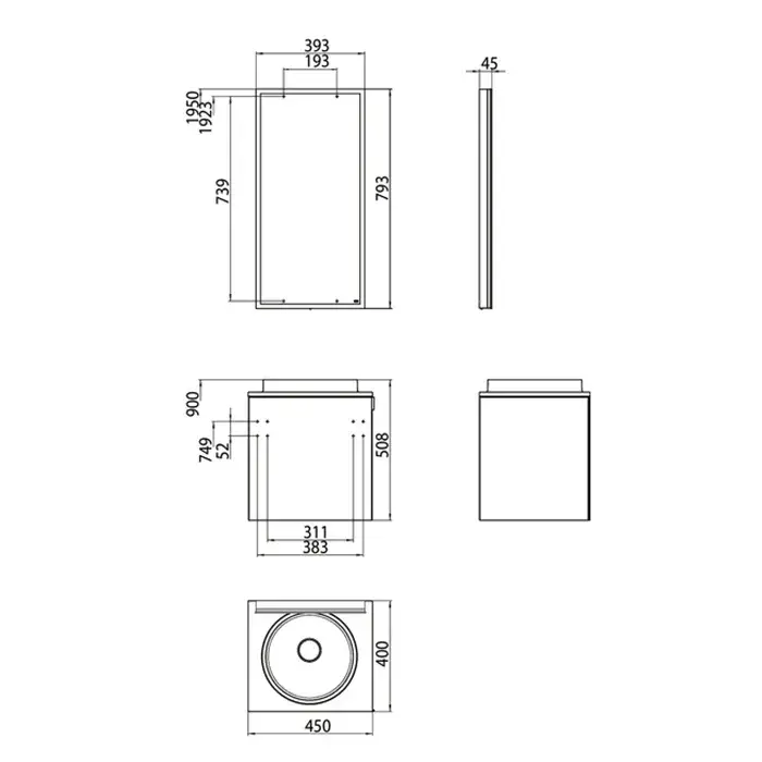 Emco Asis Комплект мебели, без отверстий для смесителя, Ручка справа, 45 см, цвет белый 9582 000 04