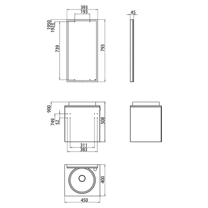 Emco Asis Комплект мебели, без отверстий для смесителя, Ручка справа, 45 см, цвет белый 9582 000 04