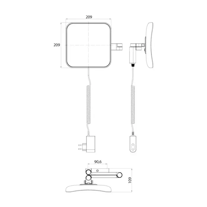 Emco Evo Косметическое зеркало, LED, 20,9x20,9 см, 2-колено, шнур, цвет черный 1095 133 51