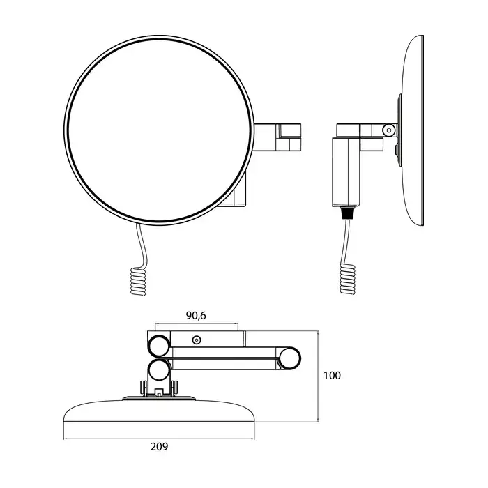 Emco Evo Косметическое зеркало, LED, диаметр 20,9 см, 2-колено, шнур, цвет черный 1095 133 40