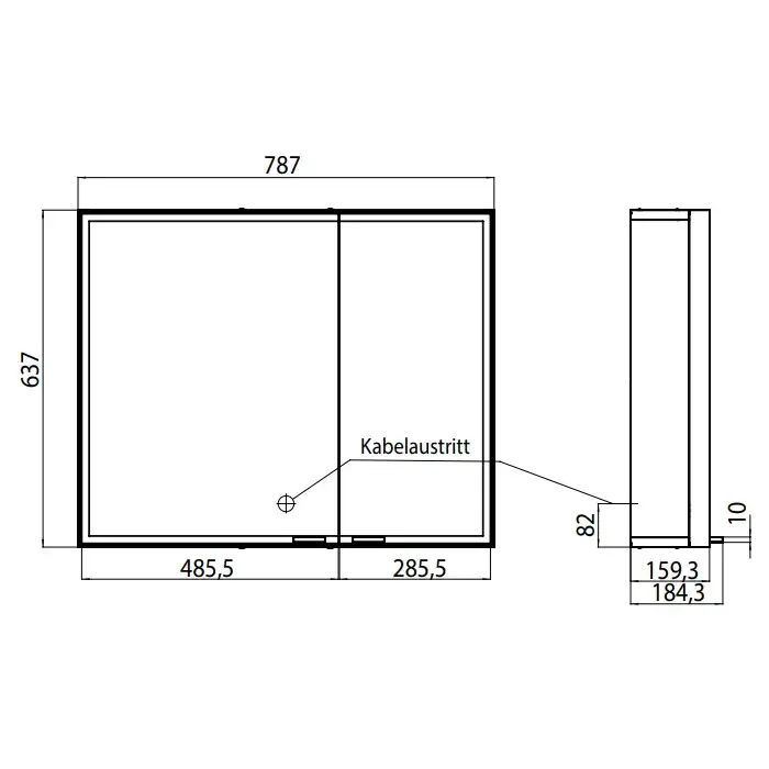 Emco Prestige Зеркальный шкаф 88,7 cм, настенный, розетка, правый, без bluetooth 9897 060 13