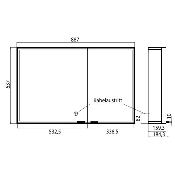 Emco Prestige Зеркальный шкаф 88,7 cм, настенный, розетка, правый, без bluetooth 9897 060 13