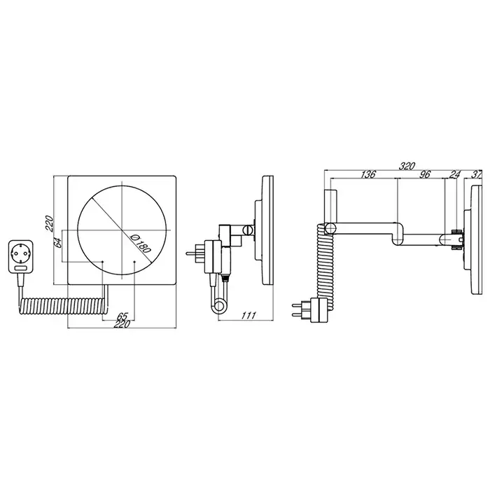 Emco Prestige Зеркало косметическое, LED, 22x22 см, двойной, snoer, verg.3, цвет хром 1096 060 25
