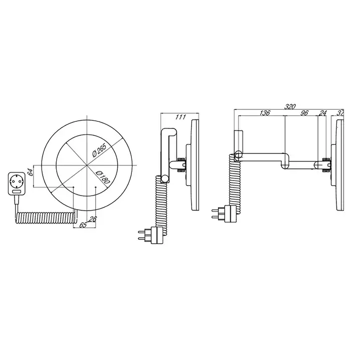 Emco Prestige Зеркало косметическое, LED, диаметр 26,5 см, двойной, snoer, цвет хром 1096 060 09