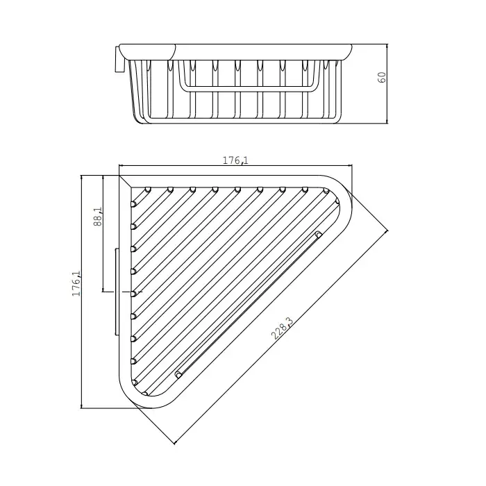 Emco System2 Полочка-решетка угловая, съемная, 17,6x17,6xh6 cм, цвет хром 3545 001 05