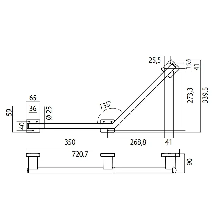 Emco System2 Поручень изогнутый, левый, угол 135°, цвет: хром 3570 001 04
