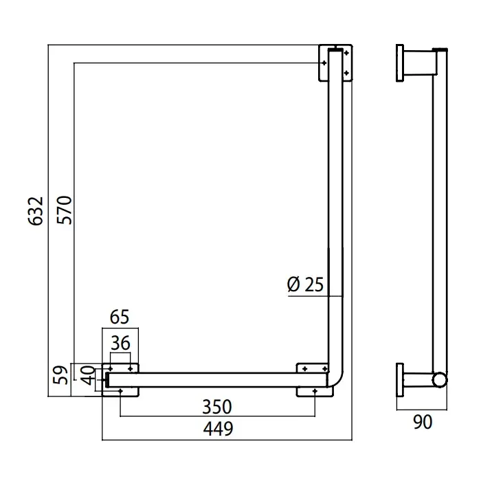 Emco System2 Поручень изогнутый, левый, угол 90°, цвет: хром 3570 001 06