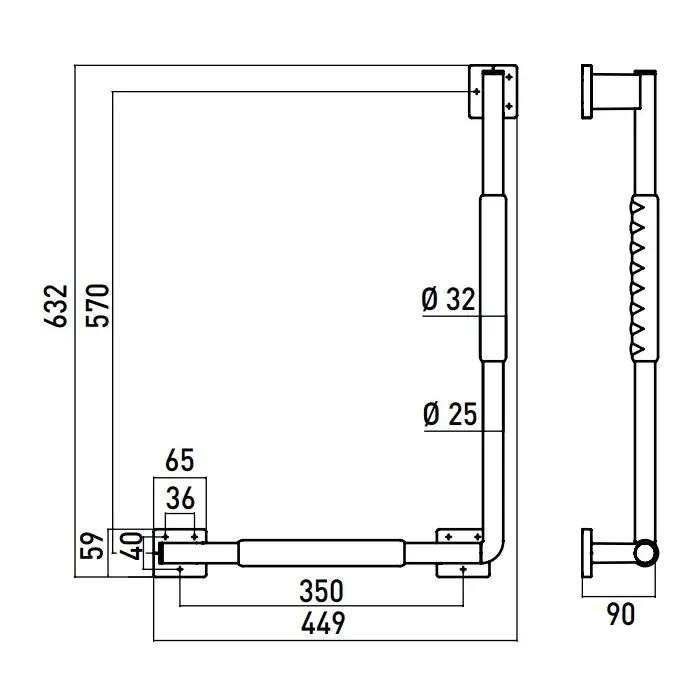 Emco System2 Поручень изогнутый, левый, угол 90°, цвет: хром/черный 3570 212 06