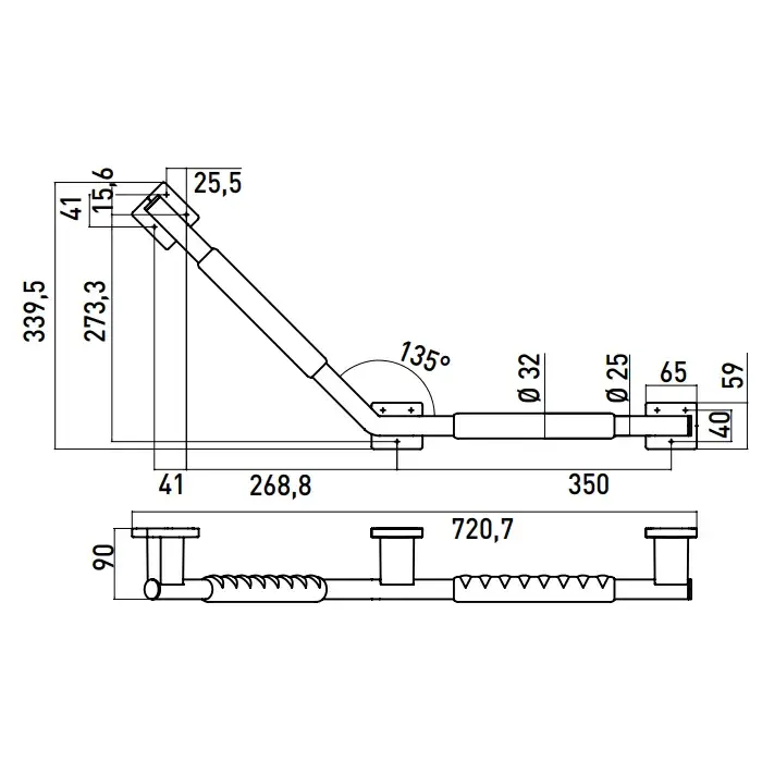 Emco System2 Поручень изогнутый, правый, угол 135°, цвет: хром/черный 3570 212 03