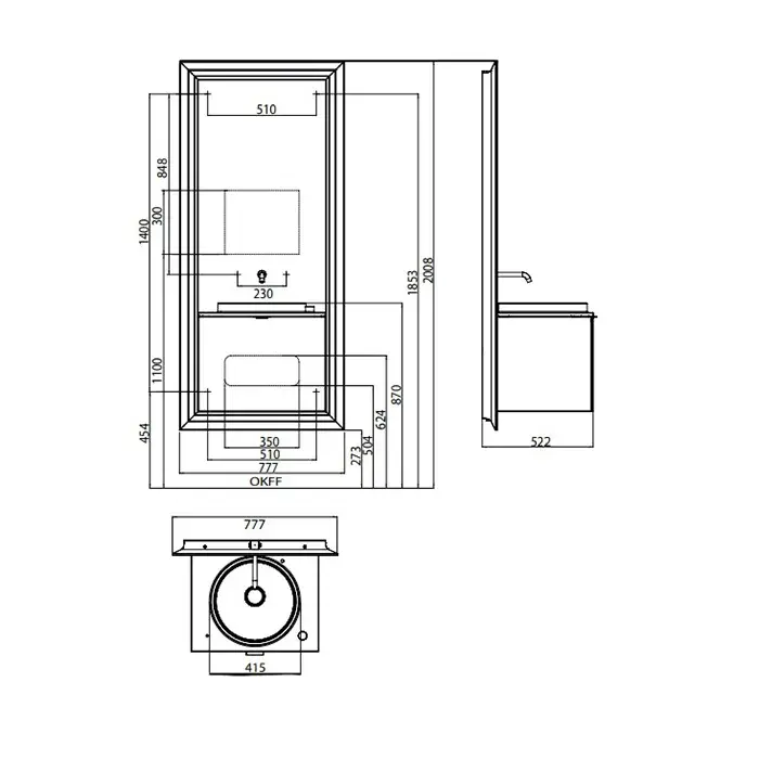 NOORTH milldue edition TOUCH Комплект мебели 41х40х88см, напольный, 3 ящика, слив в пол, раковина Milltek, смеситель H2O, цвет: белый матовый