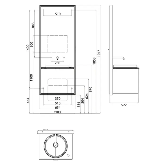 NOORTH milldue edition TOUCH Комплект мебели 41х40х88см, напольный, 3 ящика, слив в пол, раковина Milltek, смеситель H2O, цвет: белый матовый