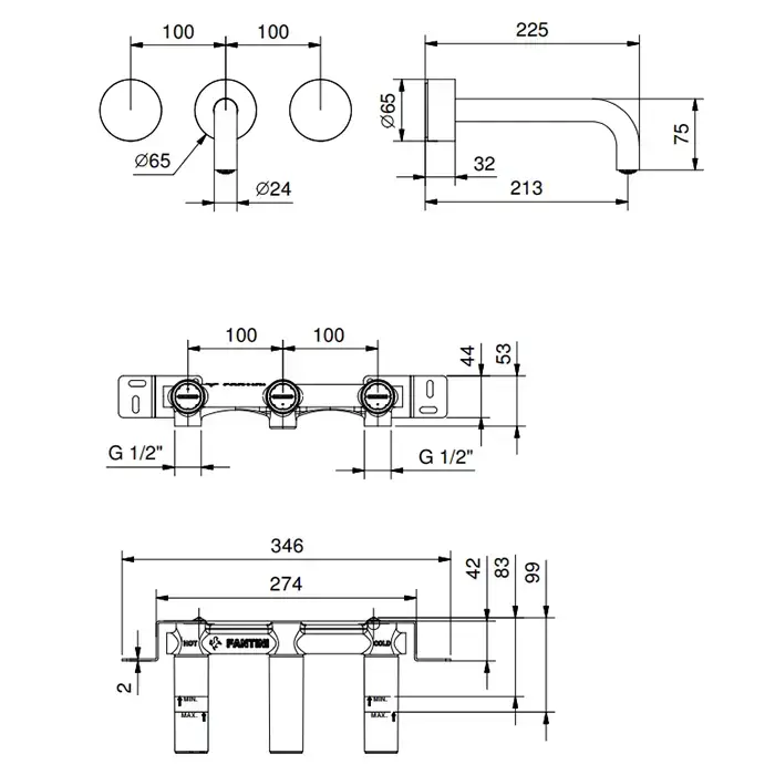 Fantini AF/21 Смеситель из стены для раковины (Наружная часть), цвет Matt British Gold PVD
