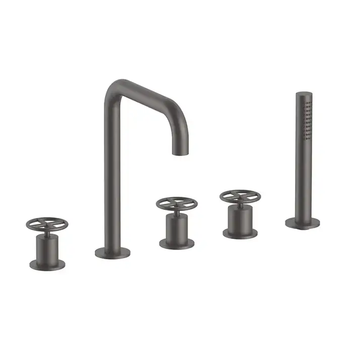Fantini Fontane Bianche Смеситель на борт ванны, 5 отв., излив 182мм, с ручн душем, цвет: Matt Gun Metal PVD