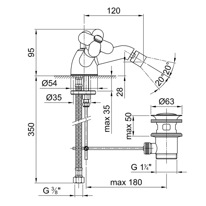 Fantini I Balocchi Смеситель для раковины, встраиваемый, излив: 20см., внешняя часть, цвет: черный матовый
