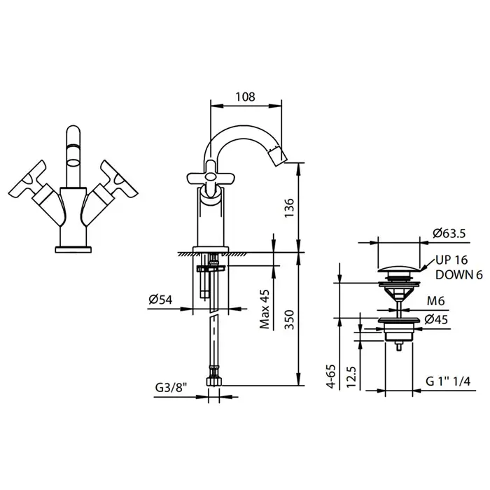 Fantini Icona Classic Смеситель для биде, 1 отв., с донным клапаном, цвет: хром