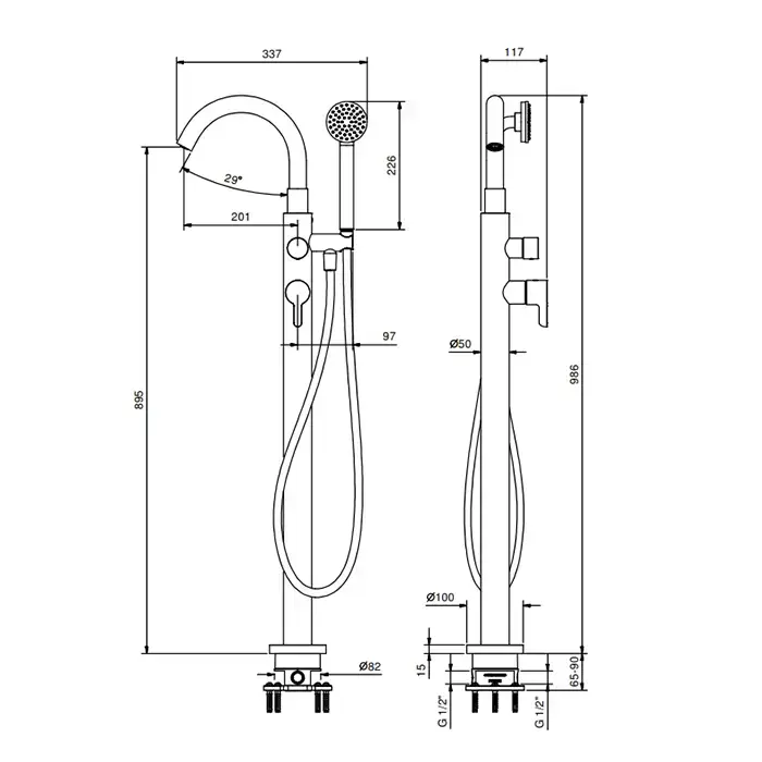 Fantini Icona Classic Смеситель для ванны, с ручной лейкой, напольный, цвет: Matt Gun Metal PVD