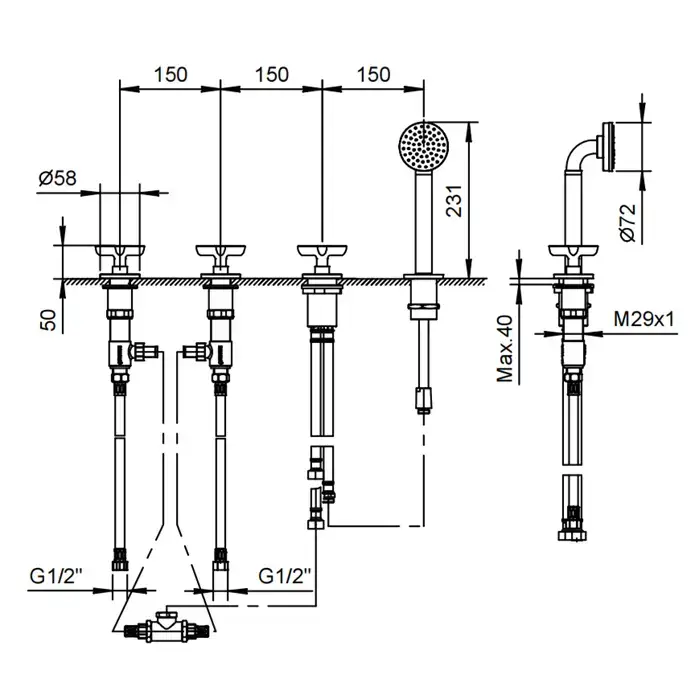 Fantini Icona Classic Смеситель на борт ванны, 4 отв., без излива, с ручн.душем, цвет: хром