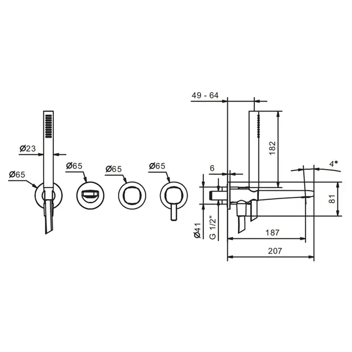 Fantini Lame Смеситель для ванны, встраиваемый, на 2 источника, излив 190мм, с ручн.душем, (наружняя часть), цвет: хром