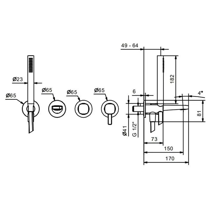 Fantini Lame Смеситель для ванны, встраиваемый, на 2 источника, излив 150мм, с ручн.душем, (наружняя часть), цвет: хром