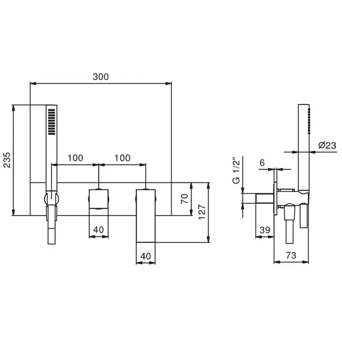 Fantini Mint Смеситель для душа, встраиваемый, на 2 источника, с ручн душем, (наружняя часть), цвет: нержавеющая сталь