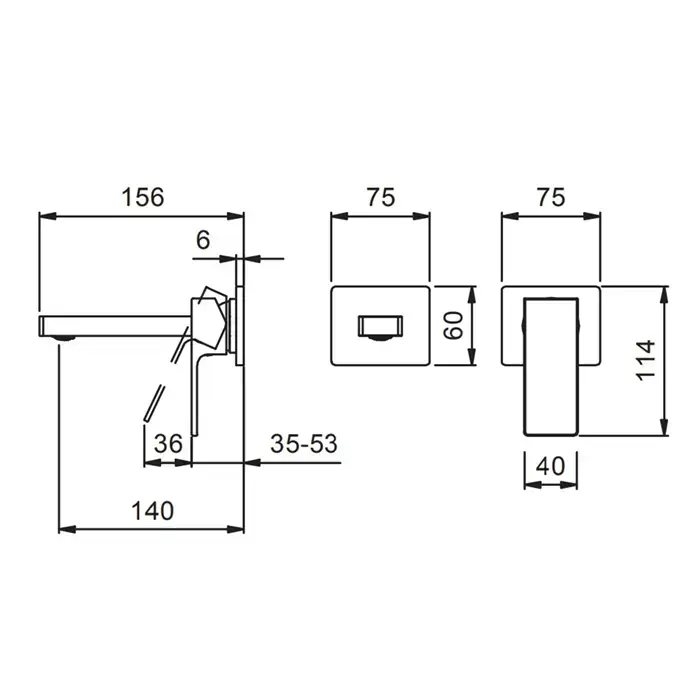 Fantini Mint Смеситель для раковины, встраиваемый, на 2 отв, без донного клапана, излив 140мм (наружняя часть), цвет: хром